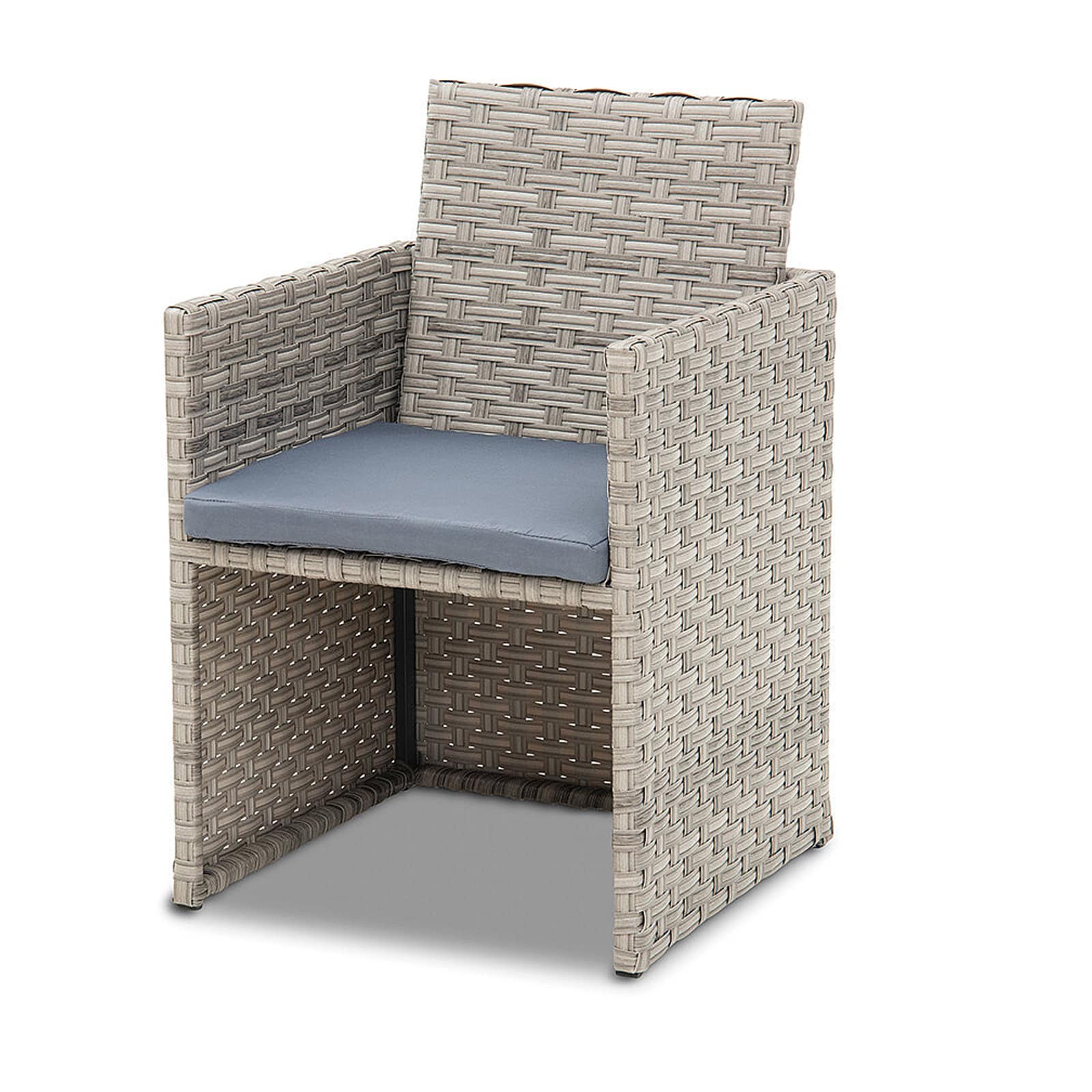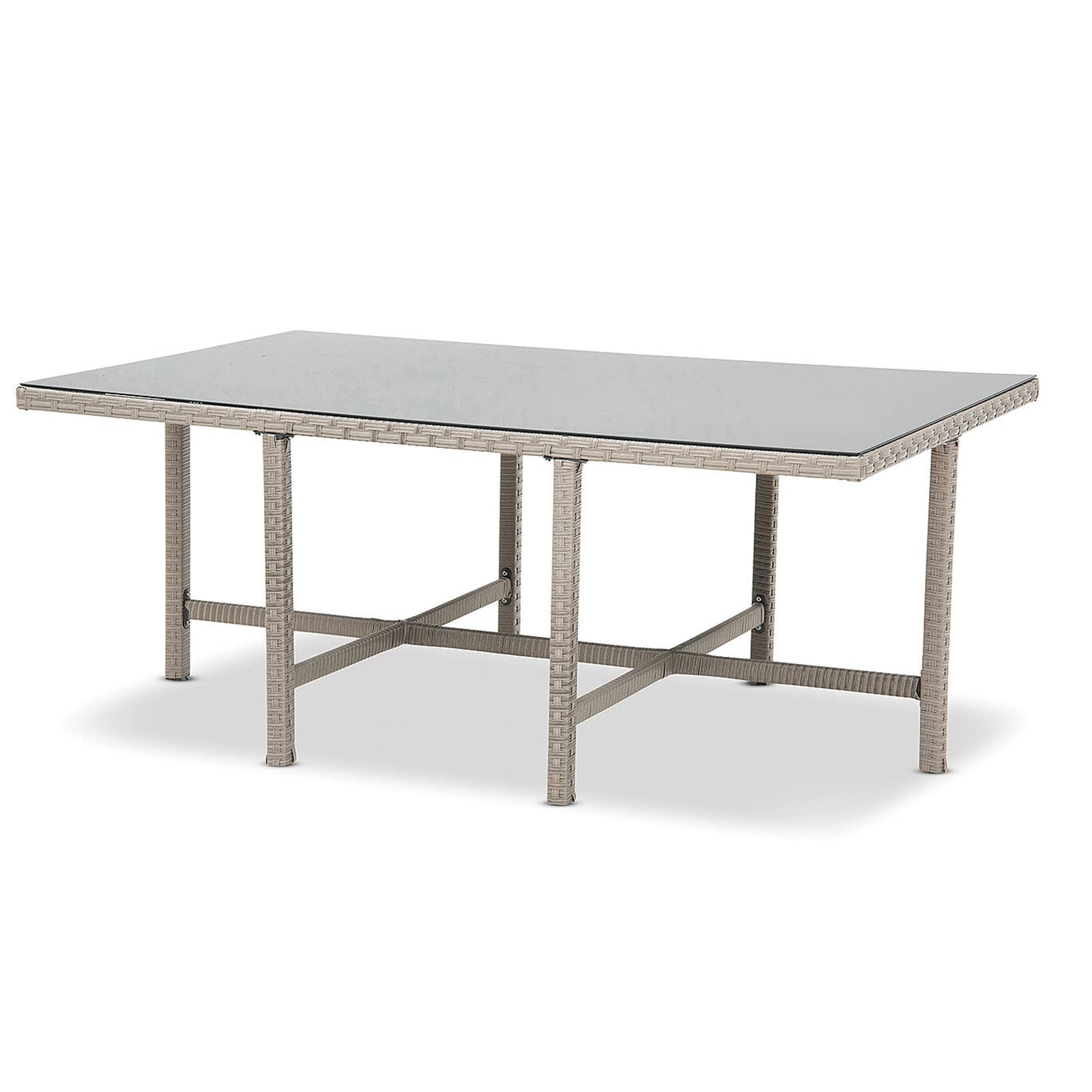 Steel frame, P.E wicker, Glass, Olefin fabric