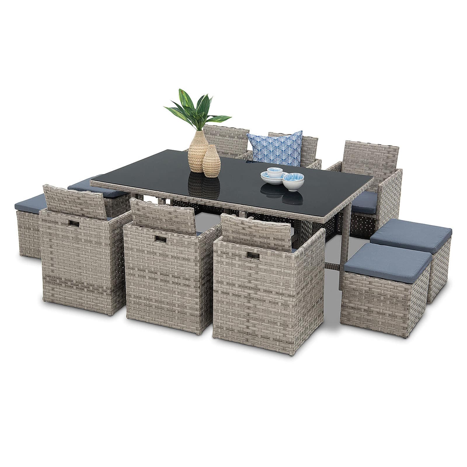 / 11 Pieces Austin glass top outdoor dining table set OD975