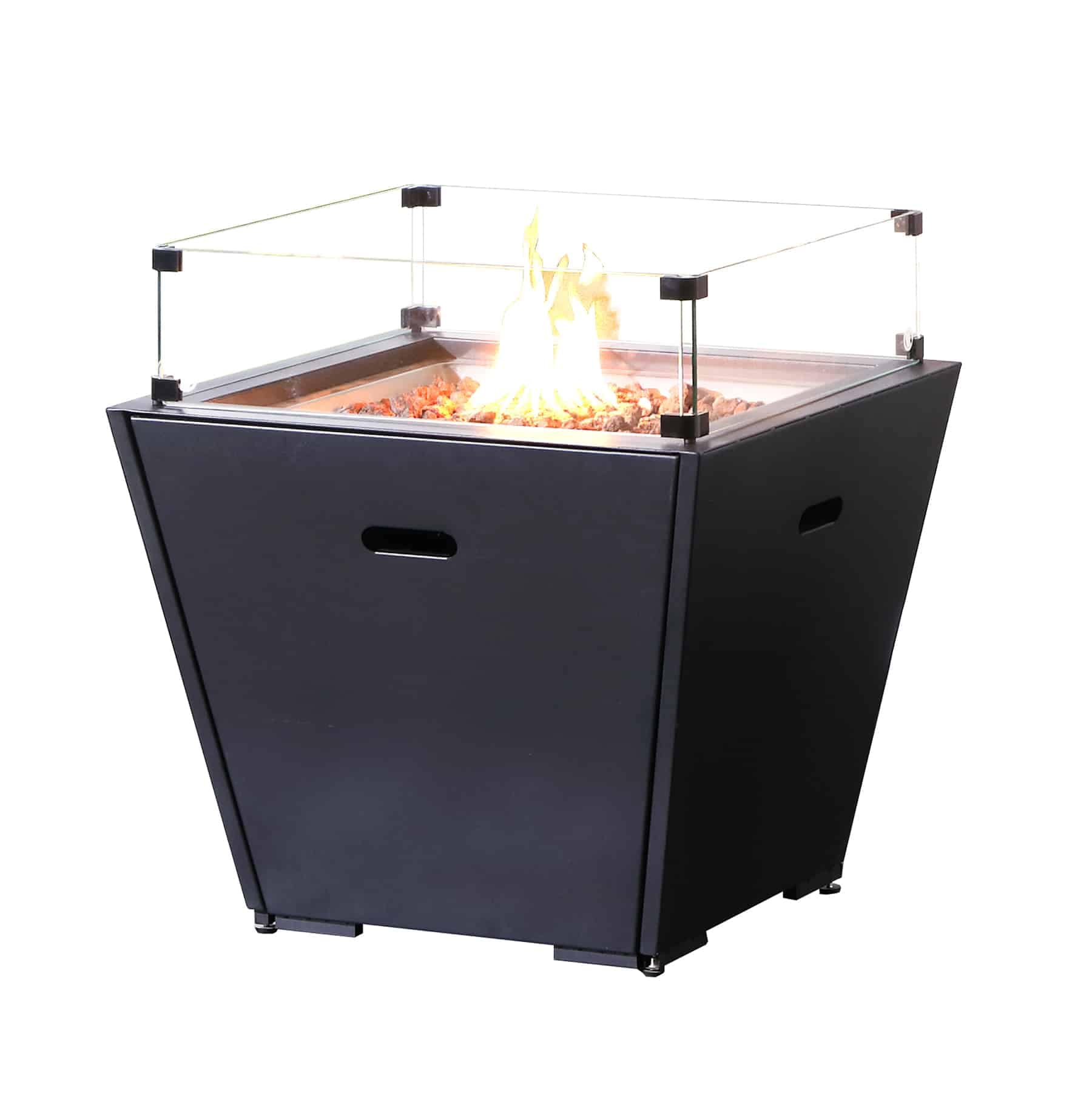 Black fire pit table: Enjoy the night with a touch of elegance.