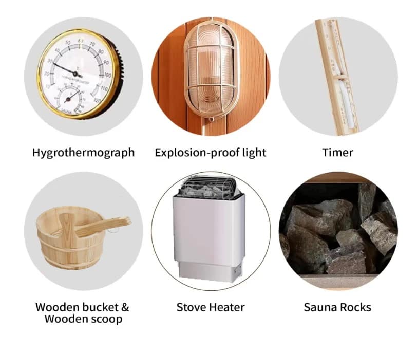Experience luxury with our outdoor wooden home sauna room, crafted from premium solid woods like red cedar, hemlock and Spruce. Fully customizable to accommodate 1-12 people with color options. Features modern amenities including Bluetooth speakers and a digital control panel for ultimate relaxation. Classic design blends seamlessly into any outdoor space, offering durability and timeless appeal.