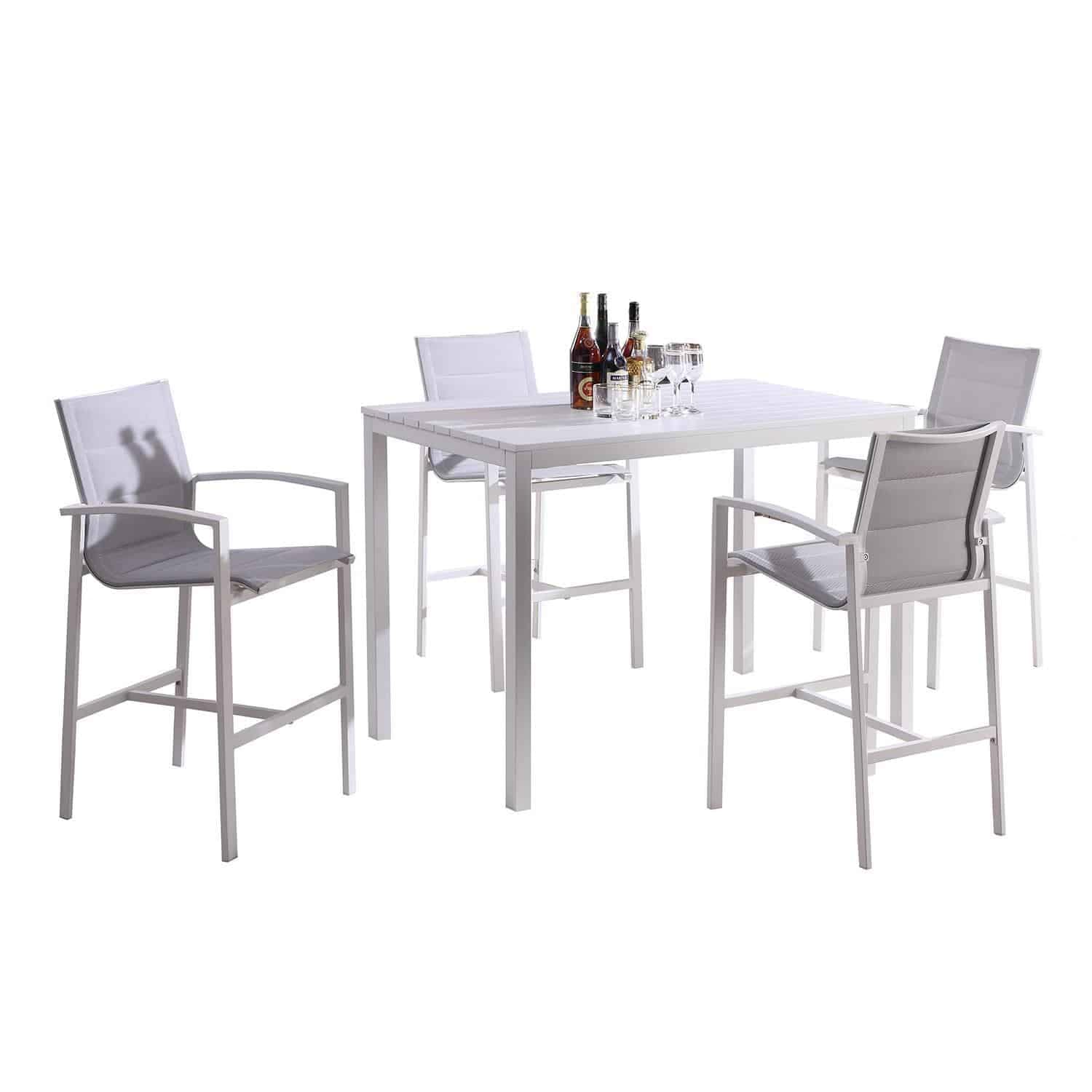 Discover the charm of dining alfresco with our elegant white outdoor dining table.