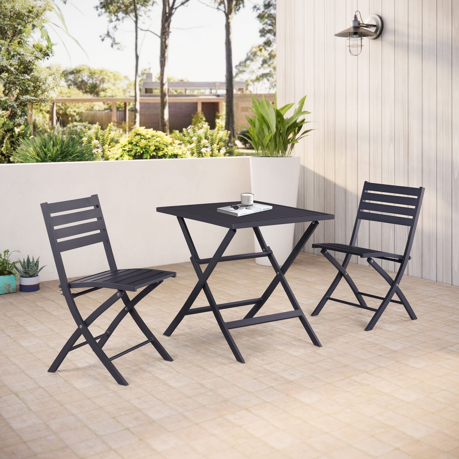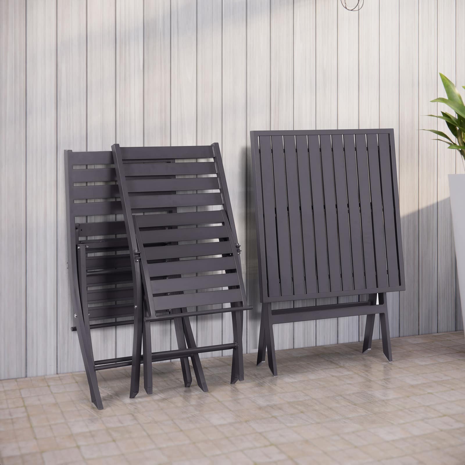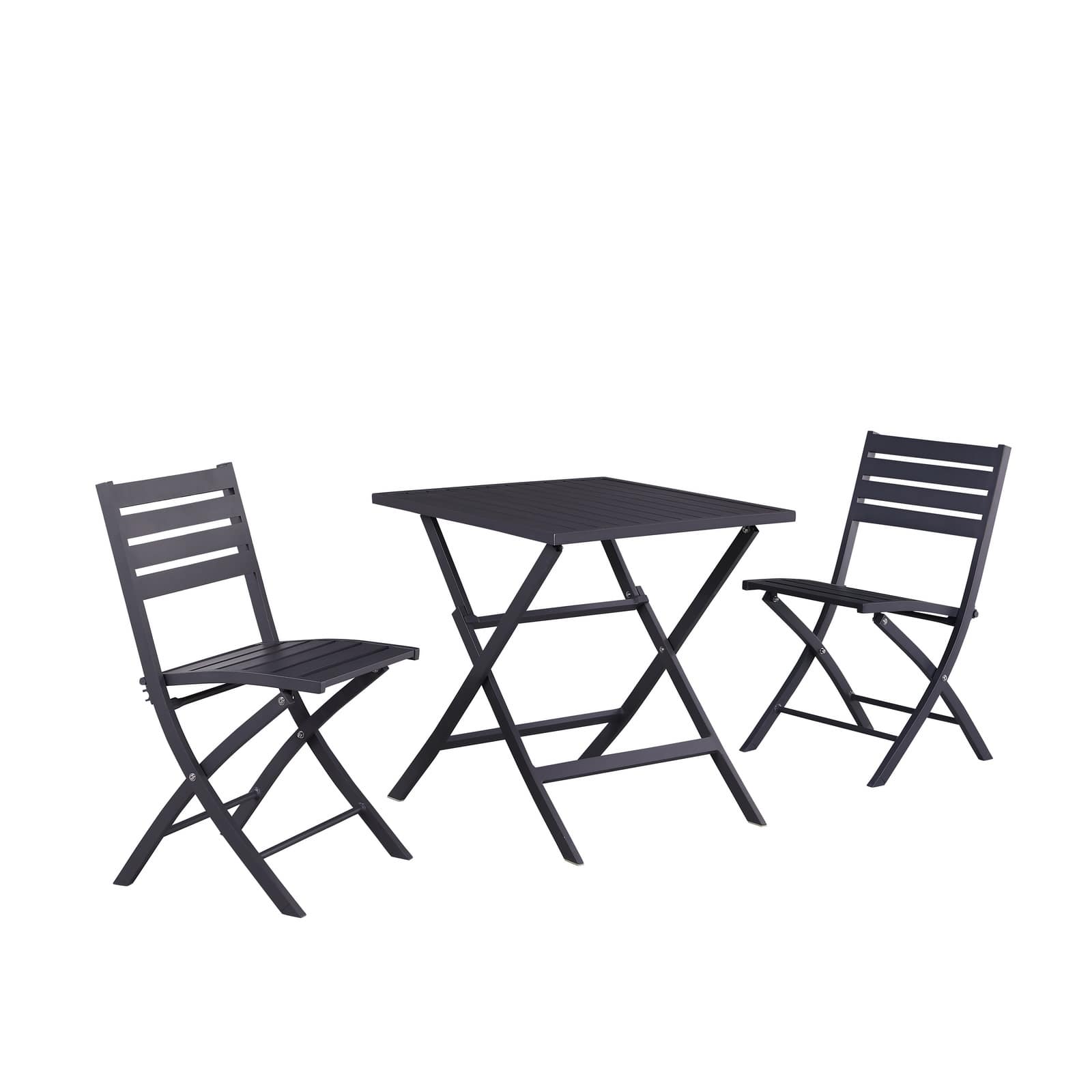 Bulk buy aluminium bistro sets for your store. Designed with style and durability in mind, the 3-piece bistro set includes two folding chairs and a folding table. The folding feature make this bistro set space-saving and easy to carry or store. Perfect for patios & cafes.
